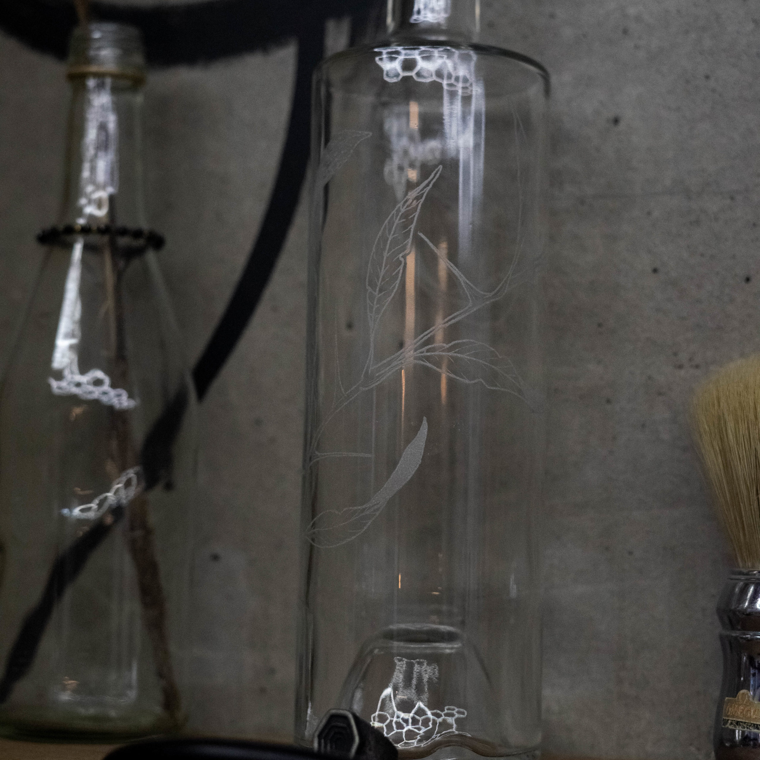 Toutes les bouteilles sont soigneusement gravées à la main par un artiste. Chaque design est unique et ne sera pas refait d'une quelconque manière.